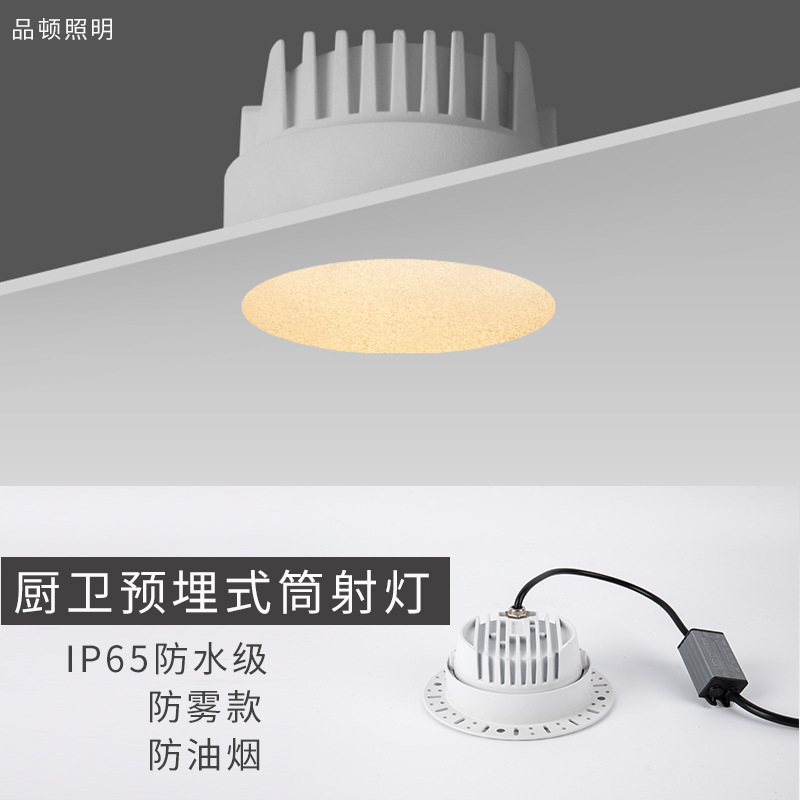 Lampu Sorot tanam tak berbingkai antikabut, lampu anti-IP65 tahan hujan anti silau, lubang minimalis tahan air dapur kamar mandi