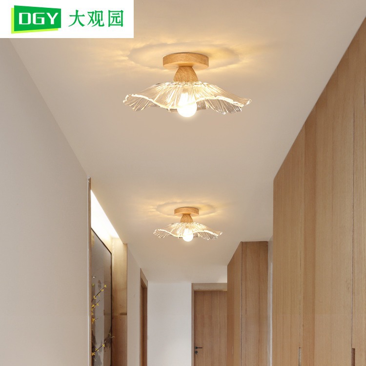 Lampu langit-langit led sangat tipis, lampu ruang tamu balkon modern sederhana kayu padat Nordik lampu ruang kamar tidur bulat