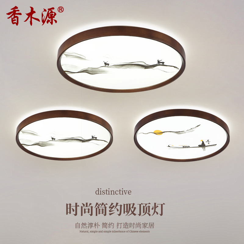 Lampu plafon led gaya China, lampu langit-langit kayu solid ultra tipis 8180
