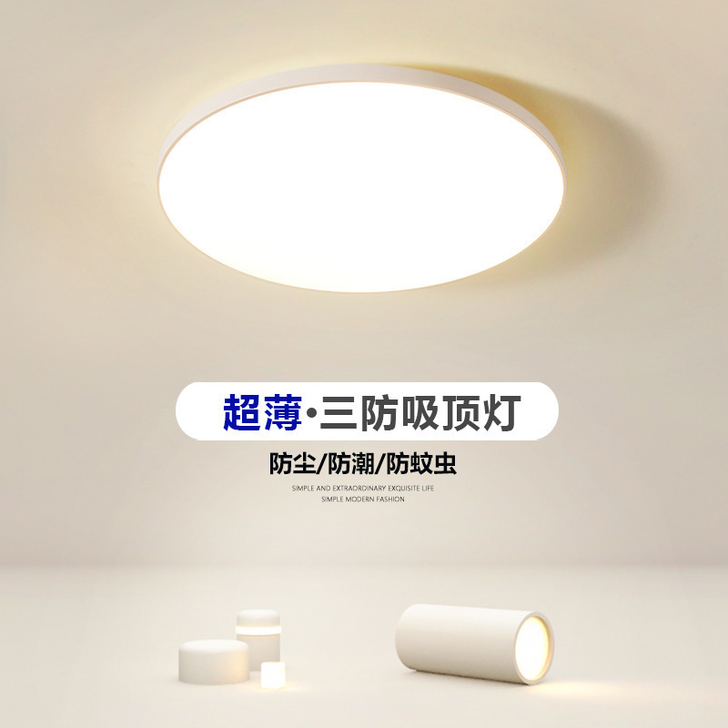 Lampu langit-langit ultra-tipis, lampu koridor bulat tiga tahan air untuk dapur dan kamar mandi