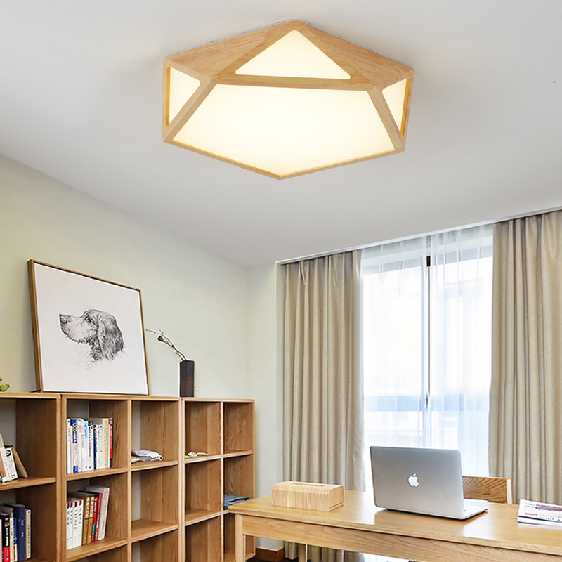 Lampu langit-langit kamar tidur Nordic, lampu langit-langit LED berlian geometris kayu polos kepribadian kreatif modern minimalis ruang belajar