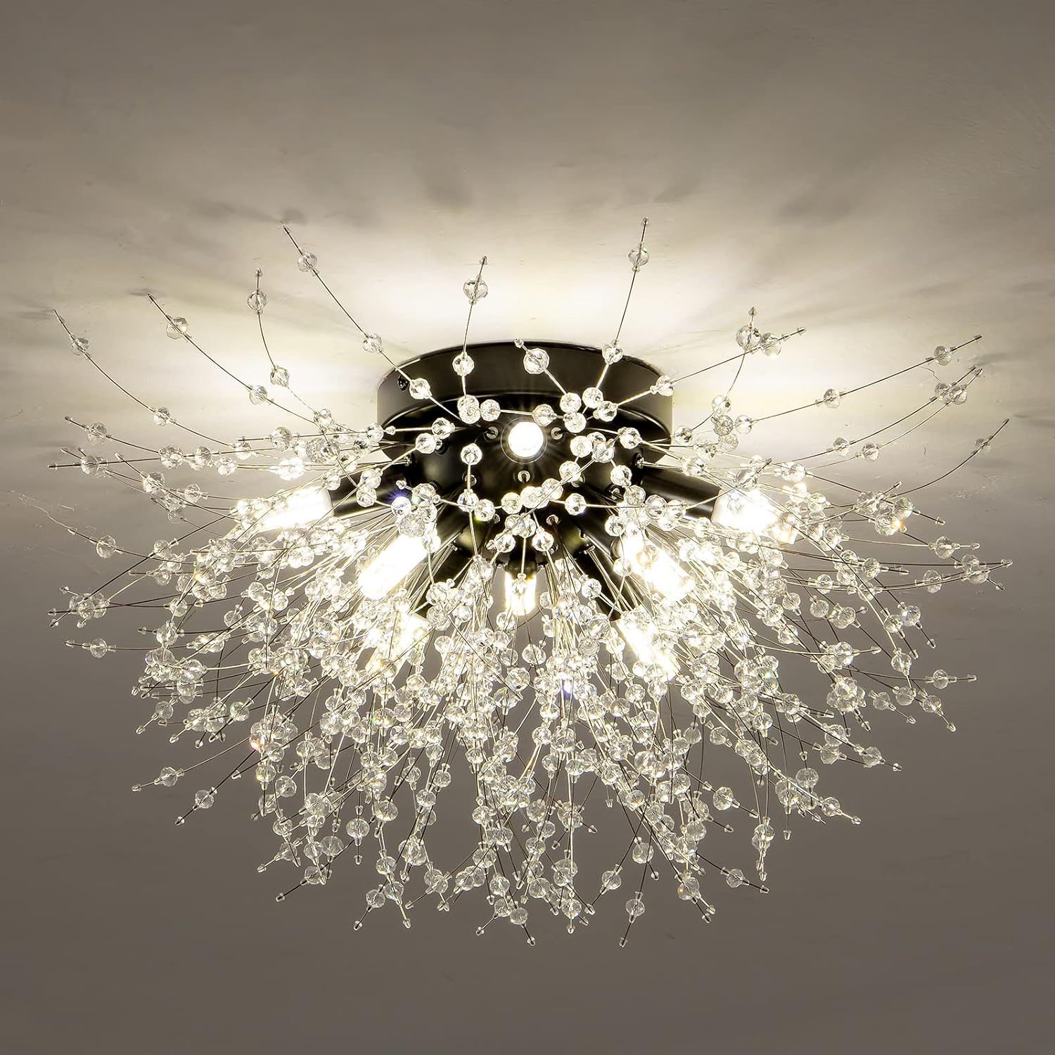 Lampu langit-langit Dandelion lampu kristal kembang api hitam lampu ruang tamu dapur kamar tidur lampu pabrik minimalis modern grosir