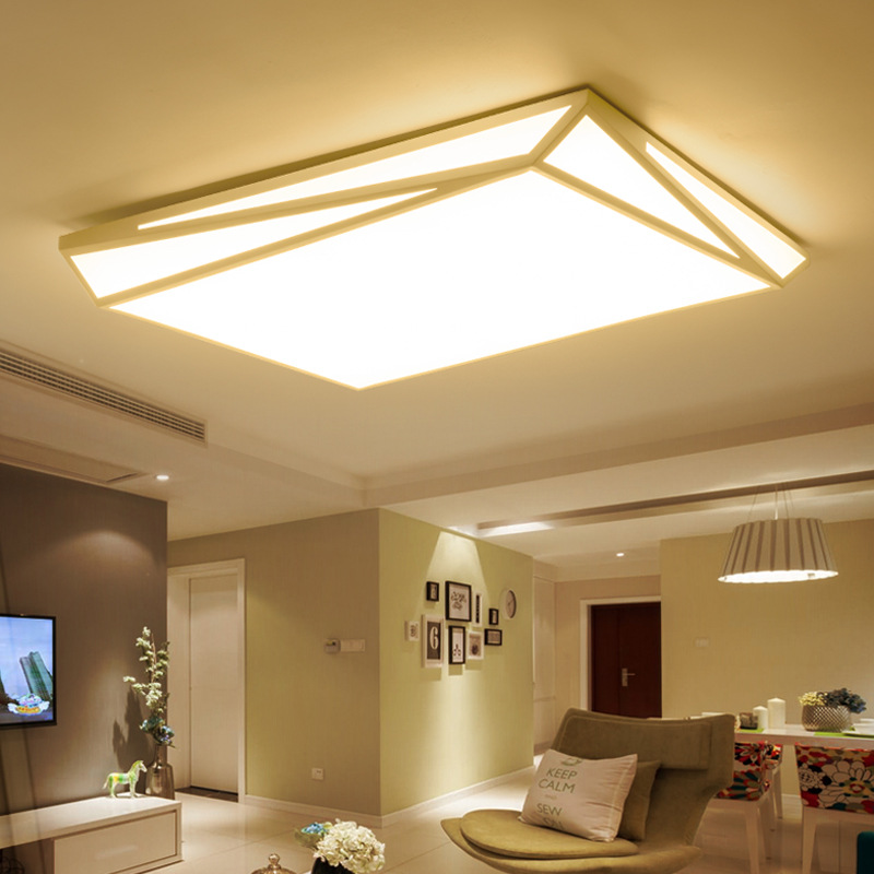 Lampu langit-langit LED persegi panjang, Modern sederhana atmosfer rumah ruang tamu pencahayaan besi berbentuk kreatif kamar tidur lampu langit-langit