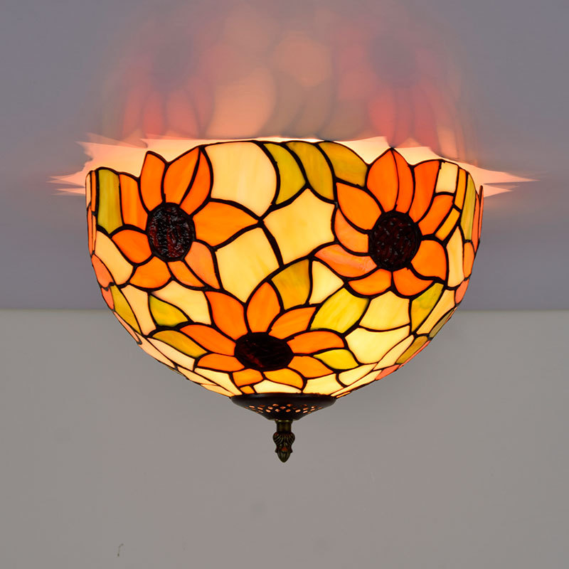 Lampu plafon kaca berwarna vintage euro sunflower Tiffany 30CM ruang makan kamar tidur lorong koridor kaca