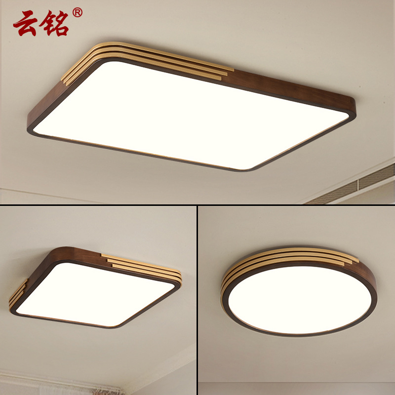 Lampu atap persegi panjang gaya Tiongkok, lampu LED kamar tidur kayu solid lampu Nordik ultra-tipis lampu warna kenari 1866
