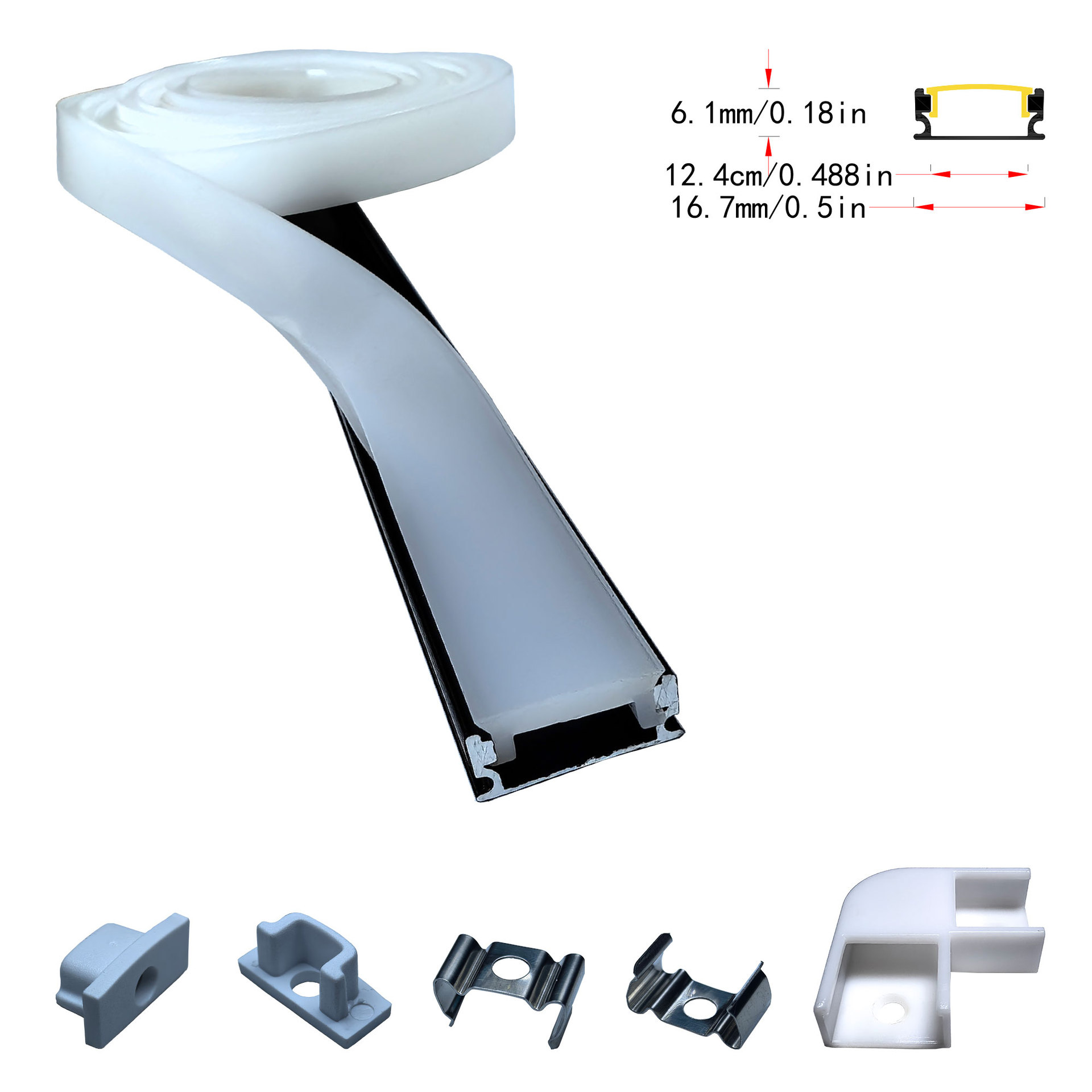 Lampu strip LED slot aluminium kabinet profil tanam kit cangkang bilah lampu keras 17X7 Aksesori cangkang slot lampu