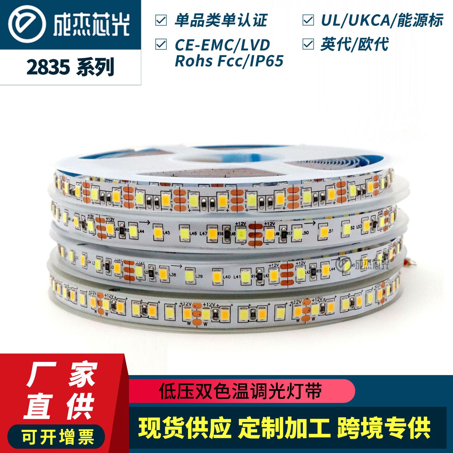LED Tekanan Rendah Perekat Sendiri 2835 Suhu Dua Warna Lampu CCT Tiga Warna dengan Bingkai Kamar Mandi Lampu Cermin Kosmetik Lampu LED 12V