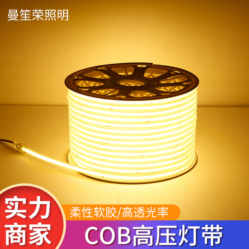 Strip lampu COB, LED tegangan tinggi 220V LED fleksibel lembut dekorasi rumah lemari langit-langit super terang alur cahaya aluminium