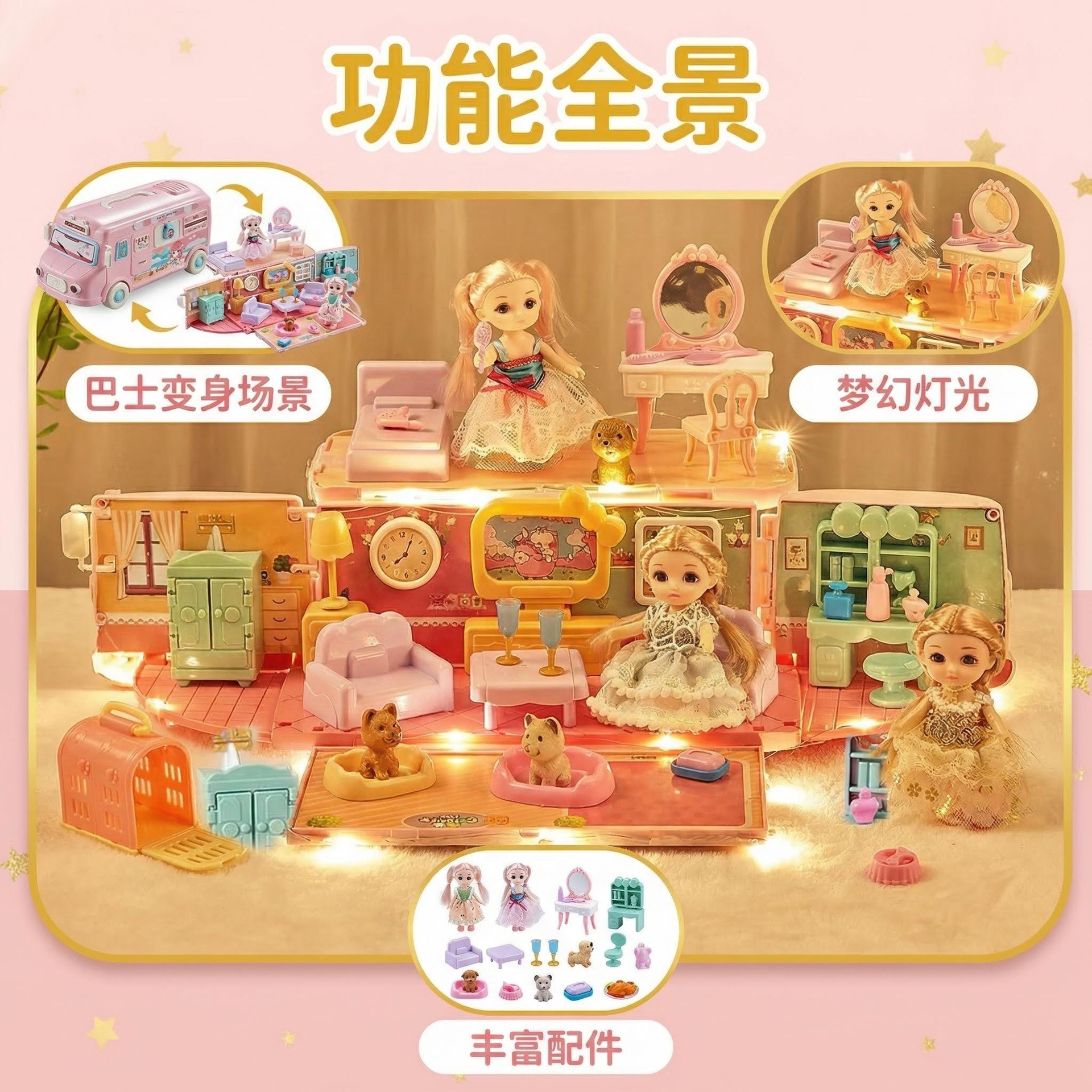 Mainan anak-anak mobil bus dua dalam satu putri rumah mewah kastil ruang tamu boneka boneka set