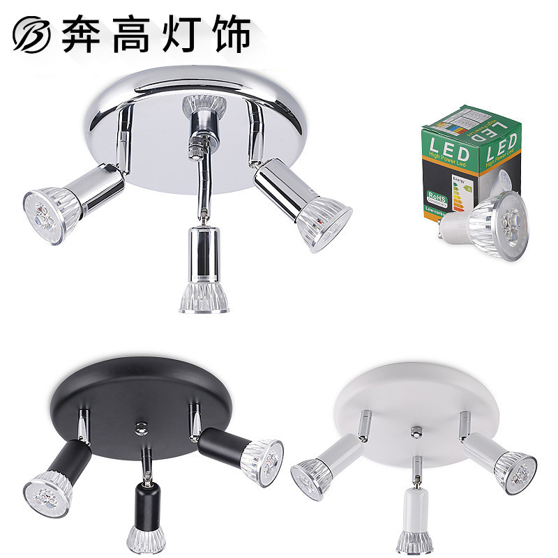 Lampu Sorot langit-langit led bulat 3-kepala, lampu sorot langit-langit cermin terpasang terbuka depan dapat disesuaikan gu10 9W
