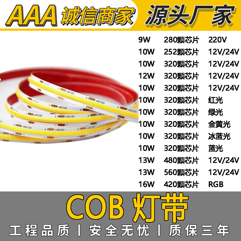 Strip lampu cob 12v 24v, strip lampu LED tegangan rendah, strip lampu cob, strip lampu perekat diri, alur cahaya aluminium lembut, garis kabinet lampu