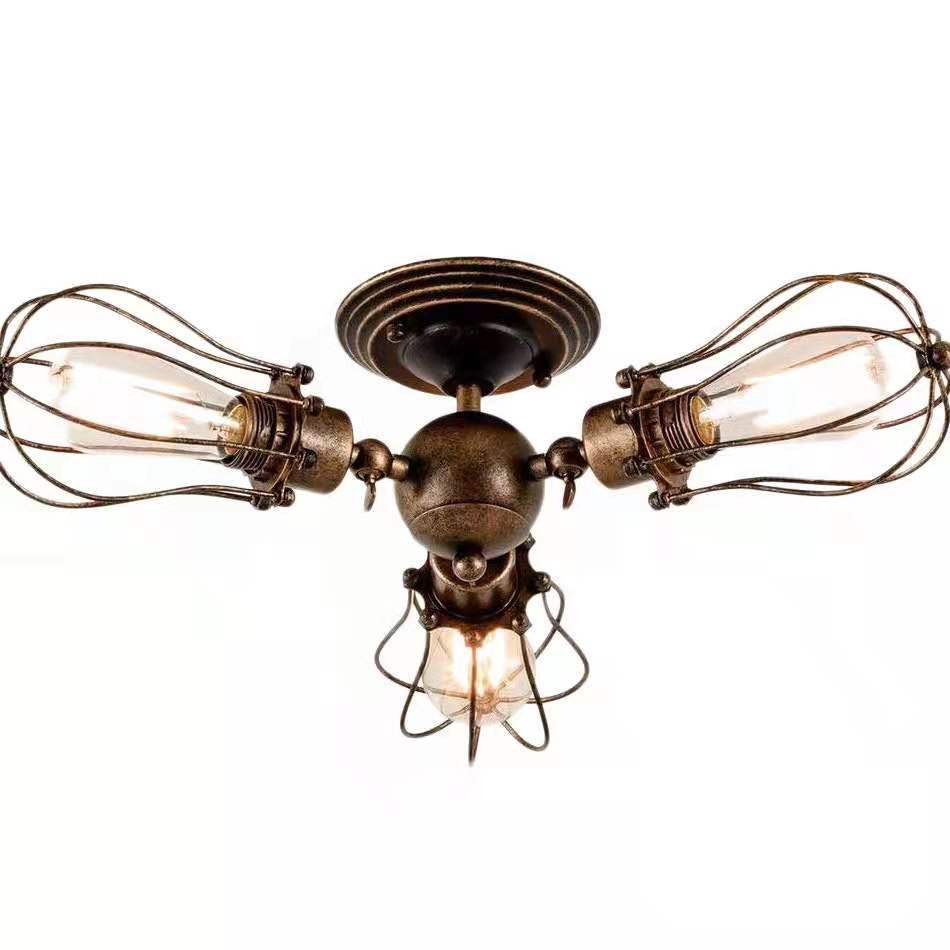 Lampu langit-langit gaya industri Retro, tiga kepala penutup besi berputar banyak kepala dapat disesuaikan lampu ruang tamu kamar tidur lorong dapur