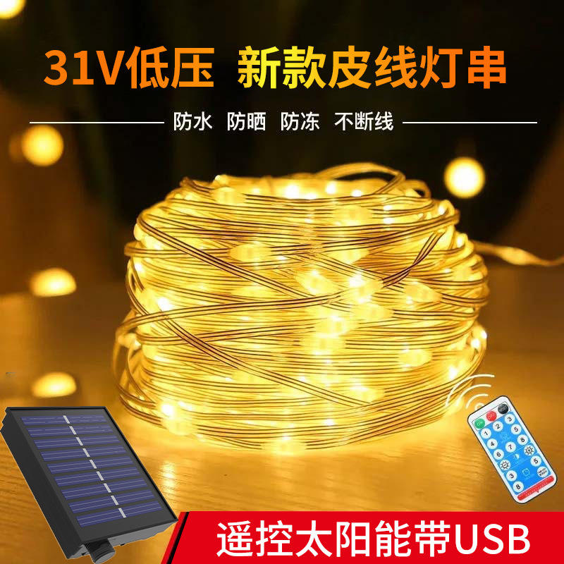 Amazon, lampu tali kulit, halaman lampu dekorasi luar ruangan berkemah Teknik Kuantitatif lampu tali tahan air surya grosir