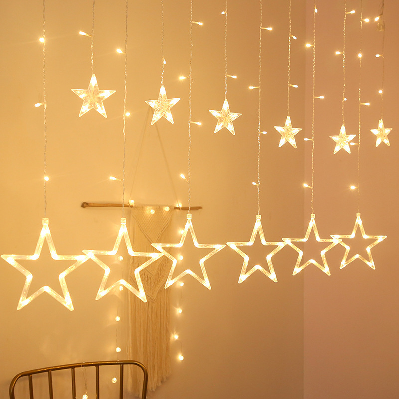 Barang Tersedia Lampu Bintang LED Lampu Bintang Merah Internet Tirai Jendela Dekorasi Natal Lampu Bintang Lima Sudut Lampu Berkilauan Lampu Bintang Penuh Bintang
