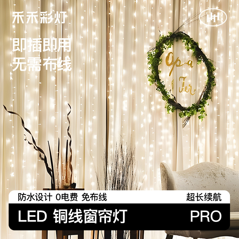 Amazon Baru 3*3 Meter Lampu Tirai Kabel Tembaga LED Dekorasi Liburan Natal USB Delapan Fungsi Lampu Warna-warni Remote Control
