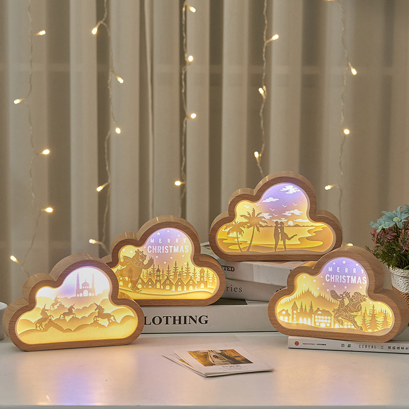 Lampu ukiran kertas bayangan, gaya Cloud Hadiah Kreatif 3D hadiah liburan hadiah ulang tahun samping tempat tidur dekorasi lampu malam jaring merah