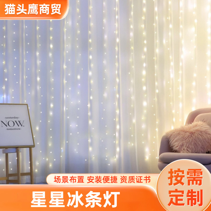 Lampu tirai kawat tembaga pvc 3*3 m, lampu hias led delapan-fungsi, lampu setrip es bintang surya