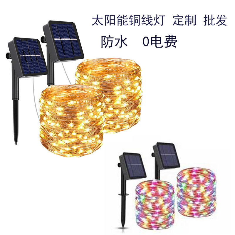 Lampu dekorasi kawat tembaga tenaga surya, lampu dekorasi halaman, lampu Festival Natal, lampu warna luar ruangan tahan air, lampu kawat tembaga led remote control