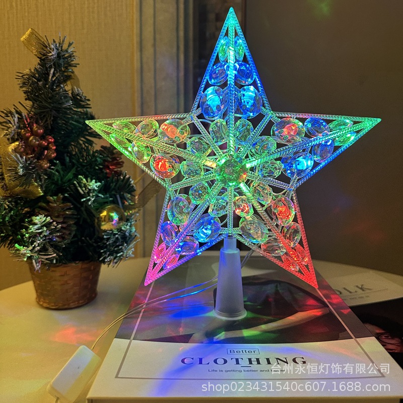 Lampu Atas Pohon Natal LED Bintang Lima Persegi Kotak Baterai Bercahaya Bintang Berkilau Dekorasi Mal Kamar Festival
