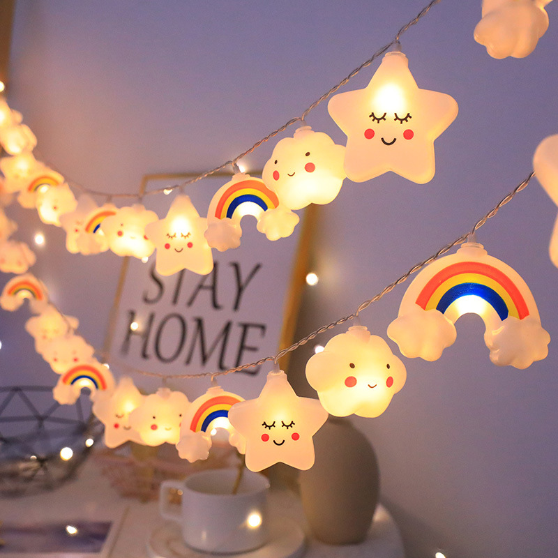 Lampu String Cahaya Awan Pelangi Lampu String Lampu Sorak Suasana Lampu Hias Kamar Liburan Lampu Lampu Bintang Smiley