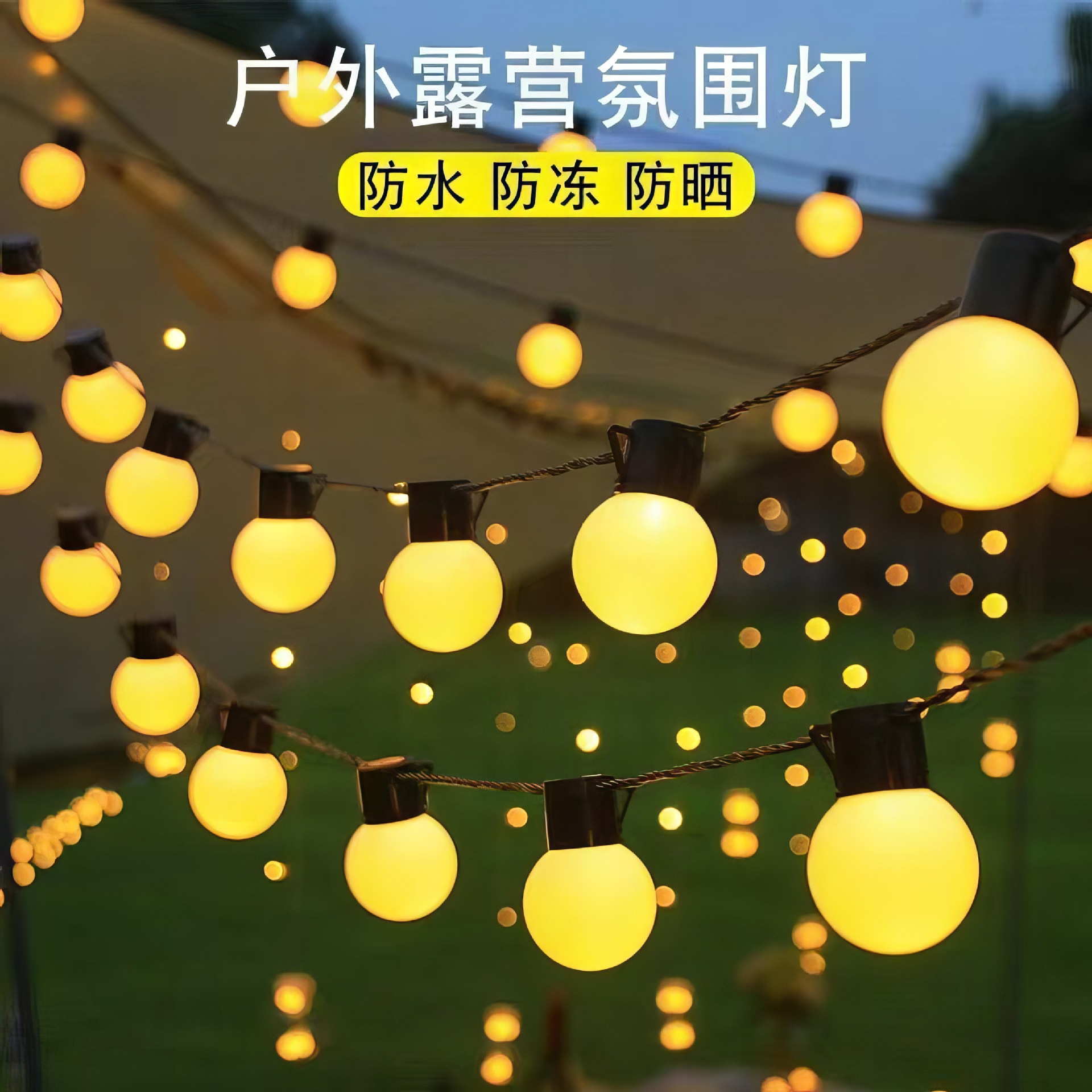 Pabrik Grosir Outdoor LED Bola Bulat Besar Berkemah Lampu String G50 Surya Tahan Air Langit Tenda Lampu Hias