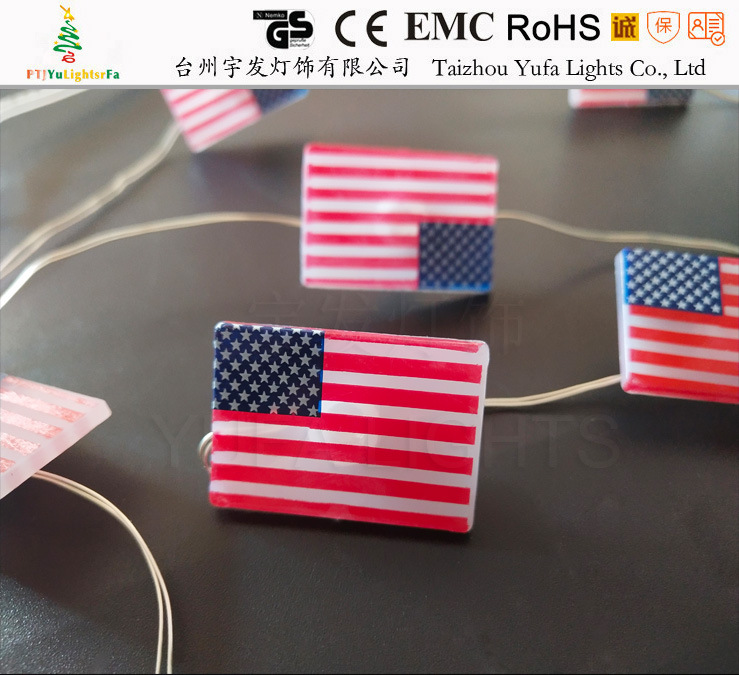 Lampu led kawat tembaga Hari Kemerdekaan Amerika, lampu warna dekoratif bendera Amerika bentuk baterai