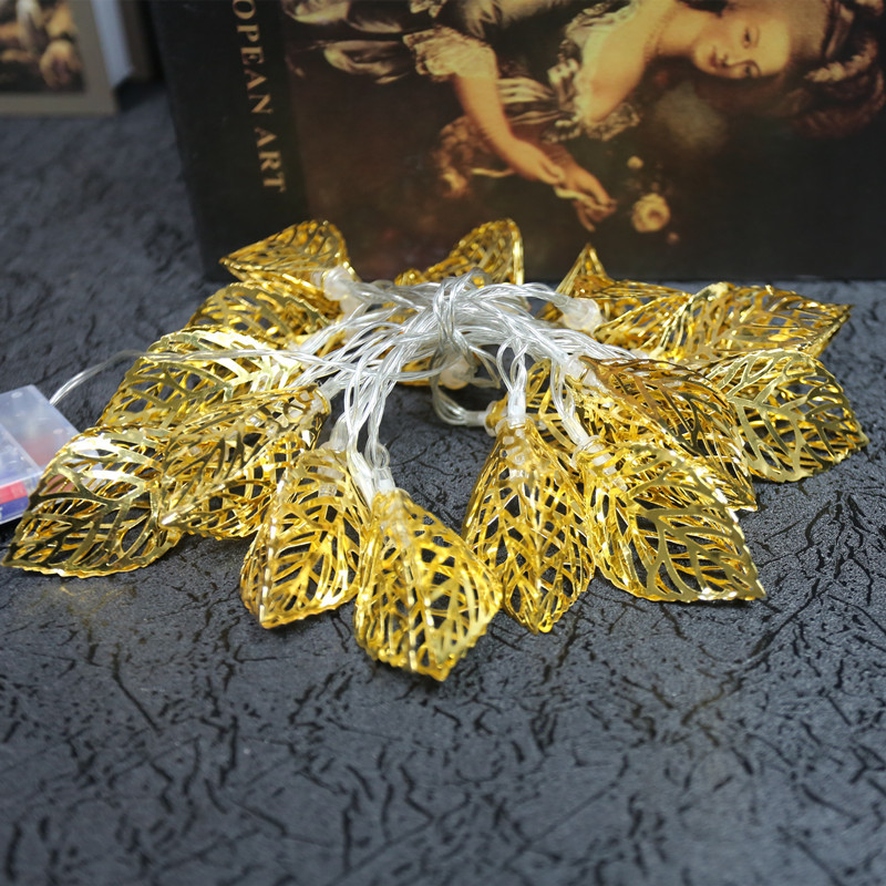 Kotak baterai daun emas berongga logam 20 kepala lampu Natal tali lampu dekorasi liburan LED penjualan langsung pabrik lampu