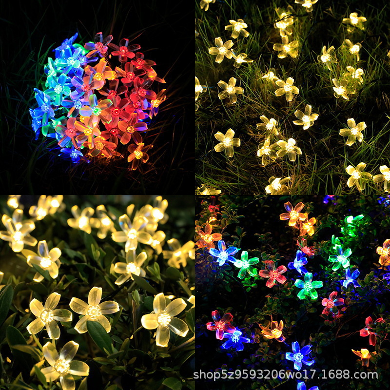 Lampu LED berwarna tali cahaya bunga sakura lintas batas cahaya halaman luar ruangan dekorasi liburan Natal bunga persik tali cahaya