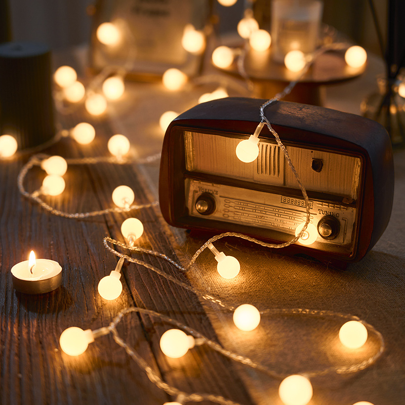Cross-border lampu tali mutiara LED dekorasi Natal lampu tali rantai mutiara dalam ruangan suasana liburan