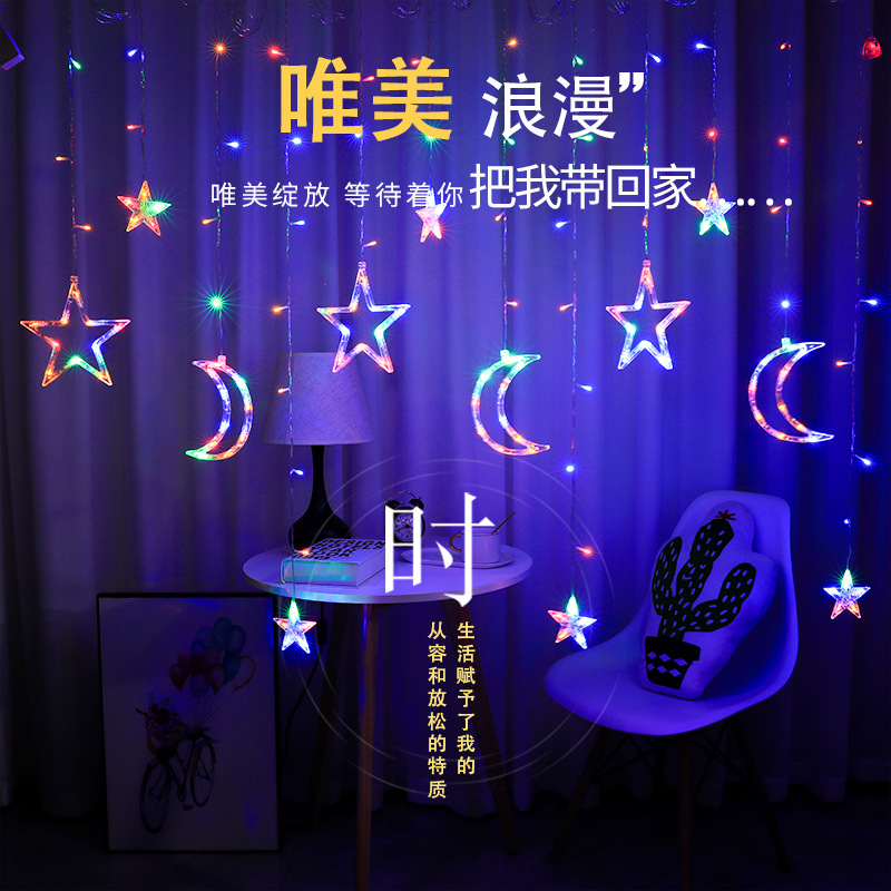 Lampu tirai LED dekorasi ruang liburan Natal lampu berwarna luar ruangan tahan air berkemah lentera tali lampu bintang bulan