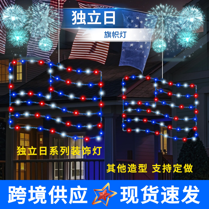 Lampu dekorasi Hari Kemerdekaan lintas batas lampu pemodelan bendera Amerika USA lampu jendela dekorasi suasana liburan lampu tali LED grosir