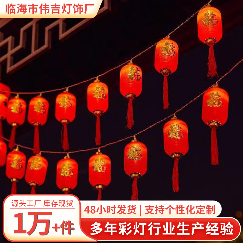 Lampu LED warna matahari, Festival Musim Semi Tahun Baru, lentera merah, tali, remote control, tata letak, perayaan, lampu LED