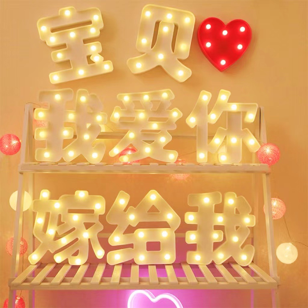 Ins lampu huruf Cina, lamaran LED pengakuan lampu pemodelan romantis dekorasi adegan pernikahan bagasi kejutan bayi