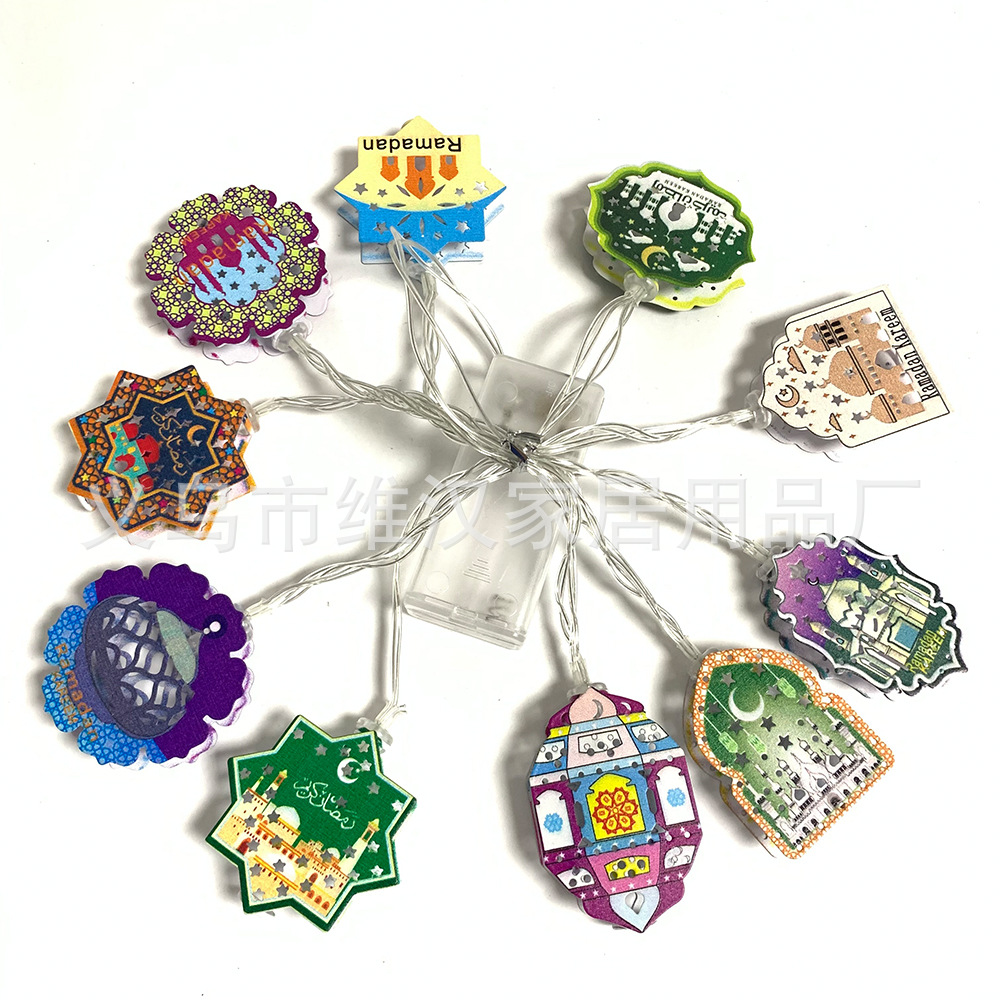 Dekorasi Suasana Festival Lampu String LED Warm Putih Lampu Minyak Pola Geometris Kubah Lengkungan Aksesoris Seni Besi Dicat Bulan