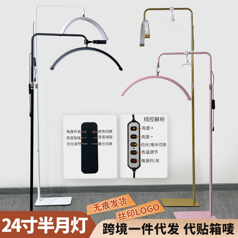 Lampu Bulan Lantai 24 Inci Lampu Pelindung Mata LED 36W Lampu Manikur Bentuk U Lampu Manikur Kecantikan Bulu Mata Bertato Lampu Setengah Bulan Kecantikan