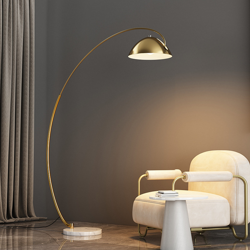 Lampu Lantai Sederhana Kreatif Nordik Lampu Kamar Tidur Sofa Instagram Ruang Tamu Lampu Pancing Emas Model Baru Seni Besi Vertikal