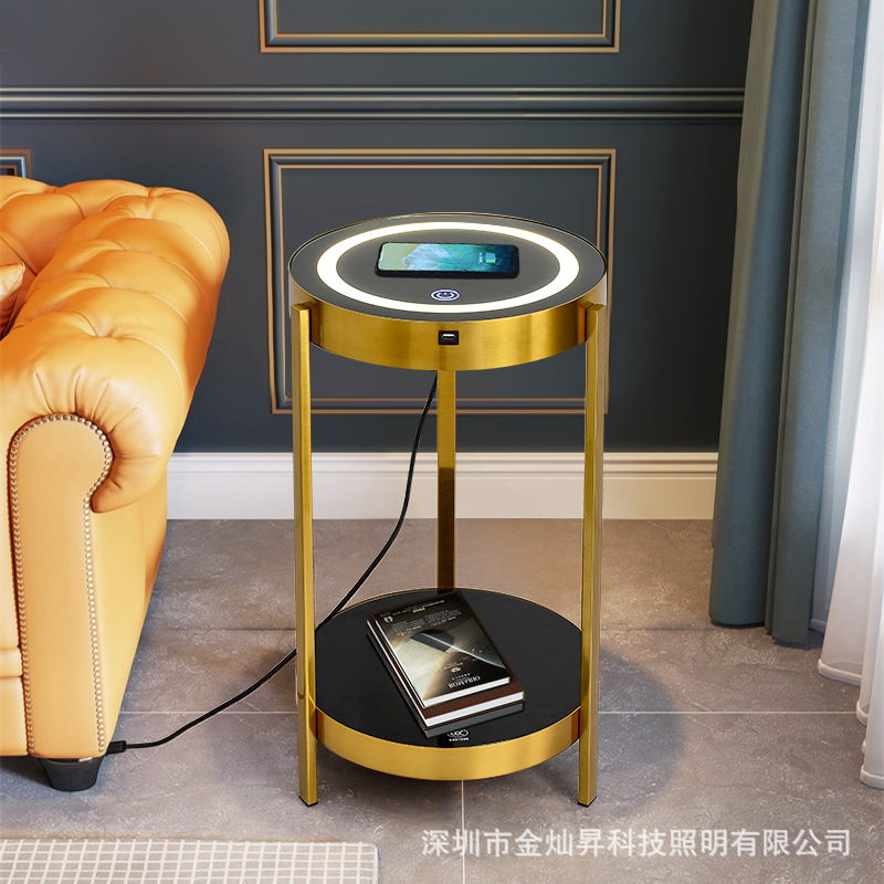 Lampu lantai Nordic mewah, lampu meja kopi penyimpanan terintegrasi pengisian nirkabel lampu samping tempat tidur kamar tidur belajar beberapa sisi ruang tamu