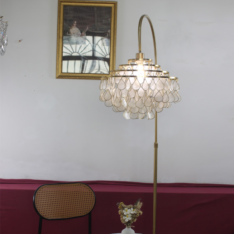 Lampu kamar tidur gaya Jepang ringan mewah French fritilary fishing ruang tamu lampu lantai shell ruang tamu gaya kuno hangat romantis B & B