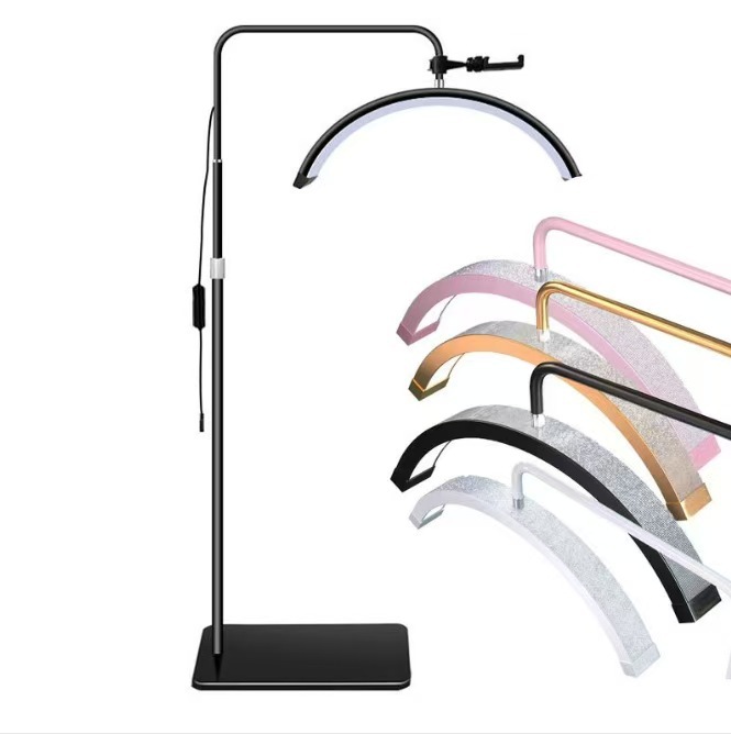 Lampu lantai pengendali jarak jauh 20 inci lampu kecantikan setengah bulan 35W lampu bordir tato alis manikur khusus isi cahaya lampu bulu mata berbentuk U