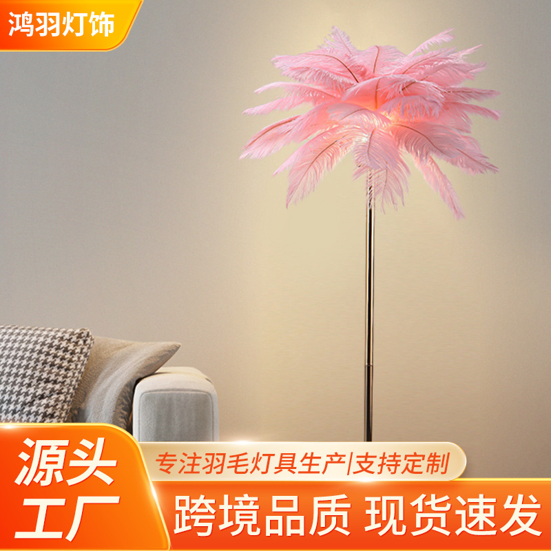 Lampu lantai bulu eksklusif lintas batas dengan nuansa mewah untuk ruang tamu dan kamar tidur, lampu samping tempat tidur bergaya ins, lampu dekoratif untuk latar belakang sofa siaran langsung.