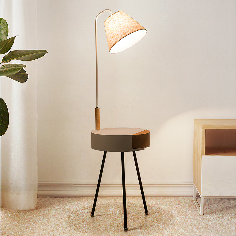 Lampu lantai meja tamu meja tamu, rak penyimpanan kopi pengisian daya USB dengan laci lampu lantai terintegrasi lampu meja vertikal
