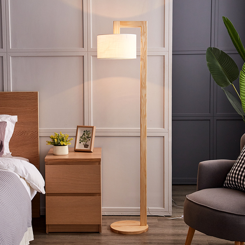 Lampu lantai kayu lilin putih Nordic, lorong ruang tamu sofa ins Internet selebriti kamar tidur samping tempat tidur lampu terintegrasi sederhana