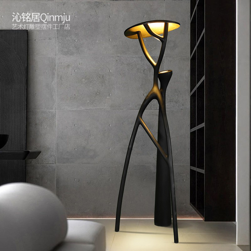 北欧风雕塑酒店大堂工作室别墅客厅装饰树脂玻璃钢树杈摆件落地灯