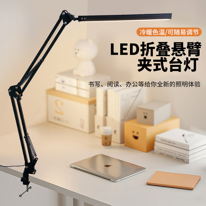 LED长臂夹子台灯USB折叠阅读工作学习卧室床头灯夹子灯可折叠护眼