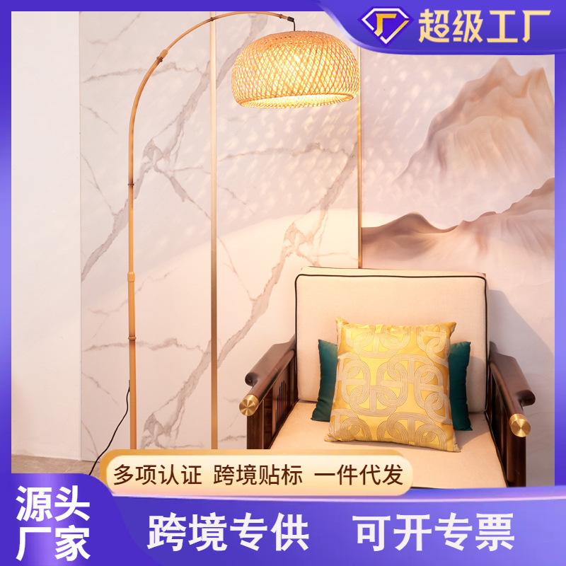 (Pasokan pabrik) gaya Jepang memancing lampu lantai retro Zen kamar teh bambu Cina woven ruang tamu belajar
