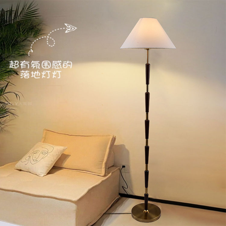 Lampu Lantai Tembaga Gaya Amerika Lampu Ruang Tamu Kayu Solid Lampu Kamar Vertikal Warna Kayu Kenari Retro Sederhana FL252