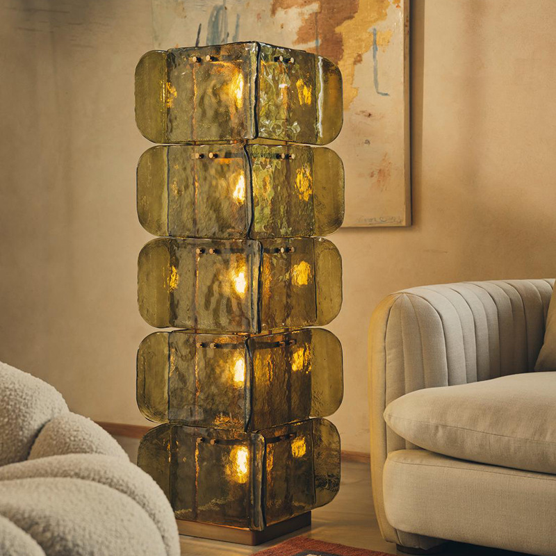 Lampu Lantai Kaca Bertumpuk Multilayer Kreatif Seni Mewah Ringan Gaya Amerika Suasana Hangat Kamar Tidur Ruang Tamu LED Hijau Zaitun