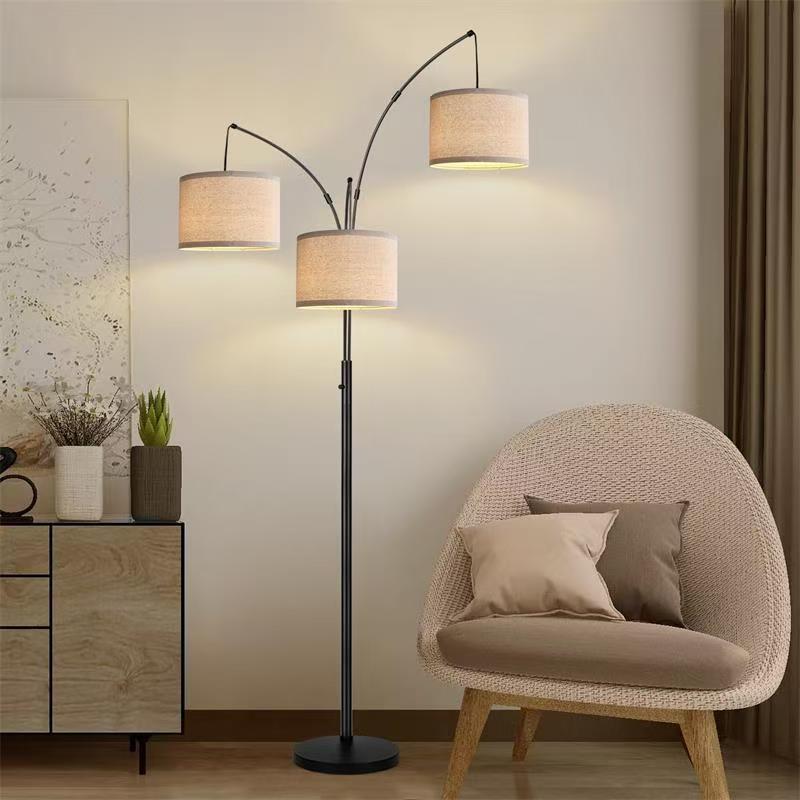 Lampu Lantai Ruang Belajar Ruang Tamu Lampu Memancing Sofa Lampu 3 Kepala Dapat Disesuaikan LED Kamar Tidur Vertikal Gaya Amerika Standar Eropa
