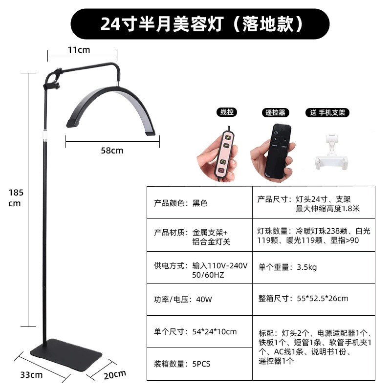 Pabrik Langsung ke Rusia M6X Lintas Batas Paket Kecil 24 Inci Lampu Setengah Bulan Lampu Lantai 40W Lampu LED Bentuk U