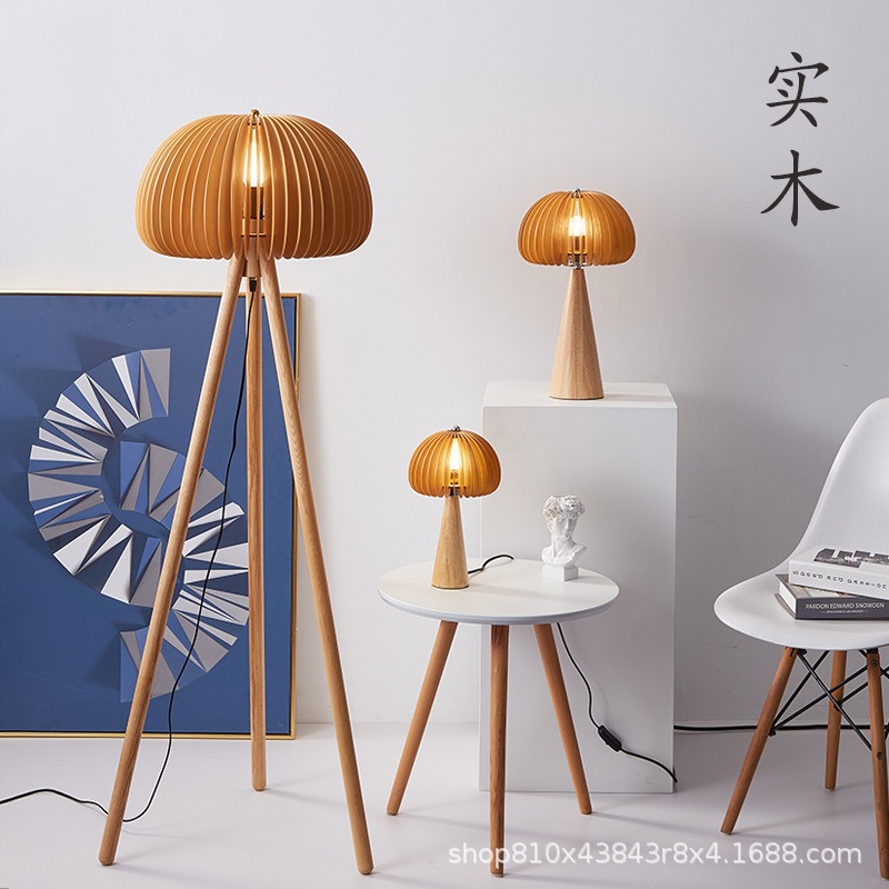 Lampu Lantai Jamur Lampu Tempat Tidur Kamar Tidur Gadis Ins Kayu Solid Model Baru 2025 Ruang Tamu Lampu Hias Rasa Superior